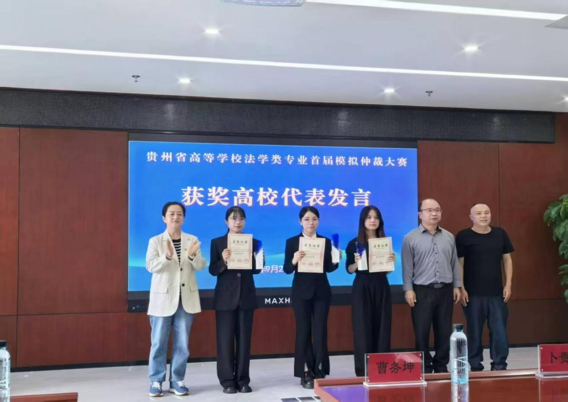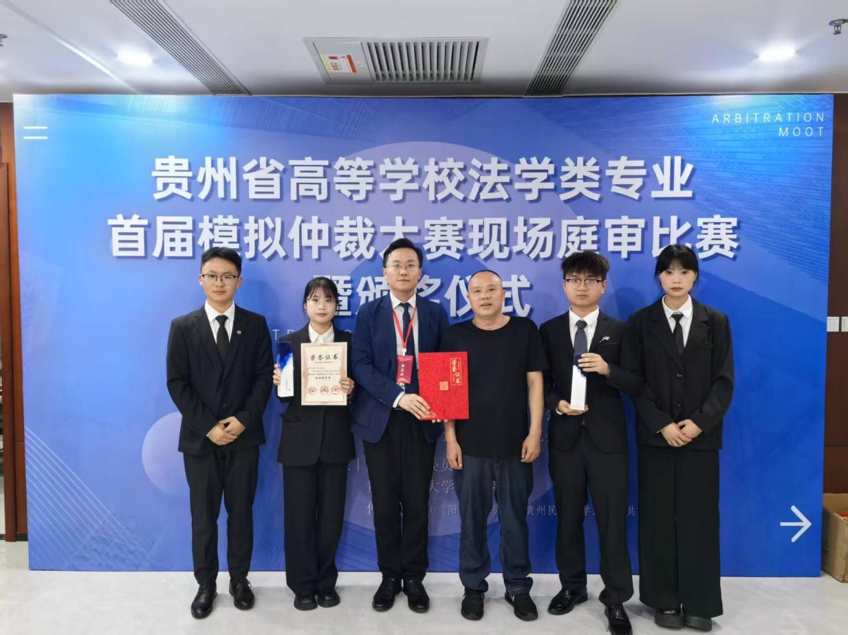 (法学院 饶子豪 报道、摄影)2025年9月27日,由贵州省法学会法学教育研究会、贵州省法学会仲裁法学研究会联合主办,贵阳仲裁委员会、贵州民族大学法学院及仲裁学院(贵阳仲裁委员会、贵州民族大学共建)共同承办的“贵州省高等学校法学类专业首届模拟仲裁大赛”盛大举行。本次赛事汇聚了来自省内14所高校的精英队伍,经过激烈角逐,开云登陆入口法学院代表队凭借扎实的专业功底与卓越的团队协作能力脱颖而出,最终荣膺季军。